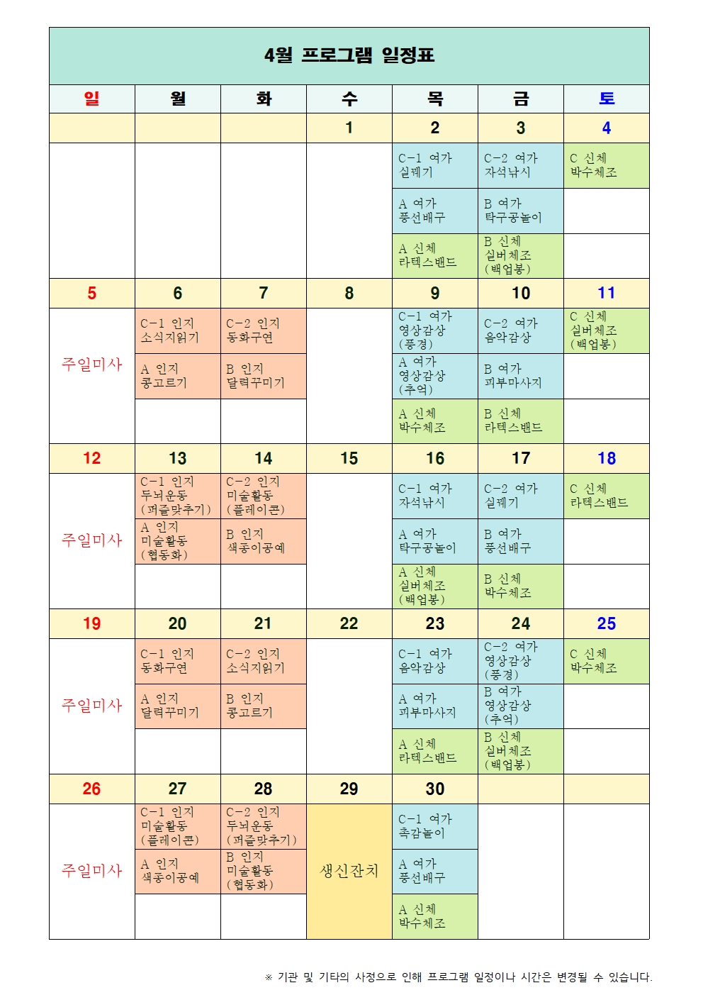 2026년 4월 프로그램 계획표