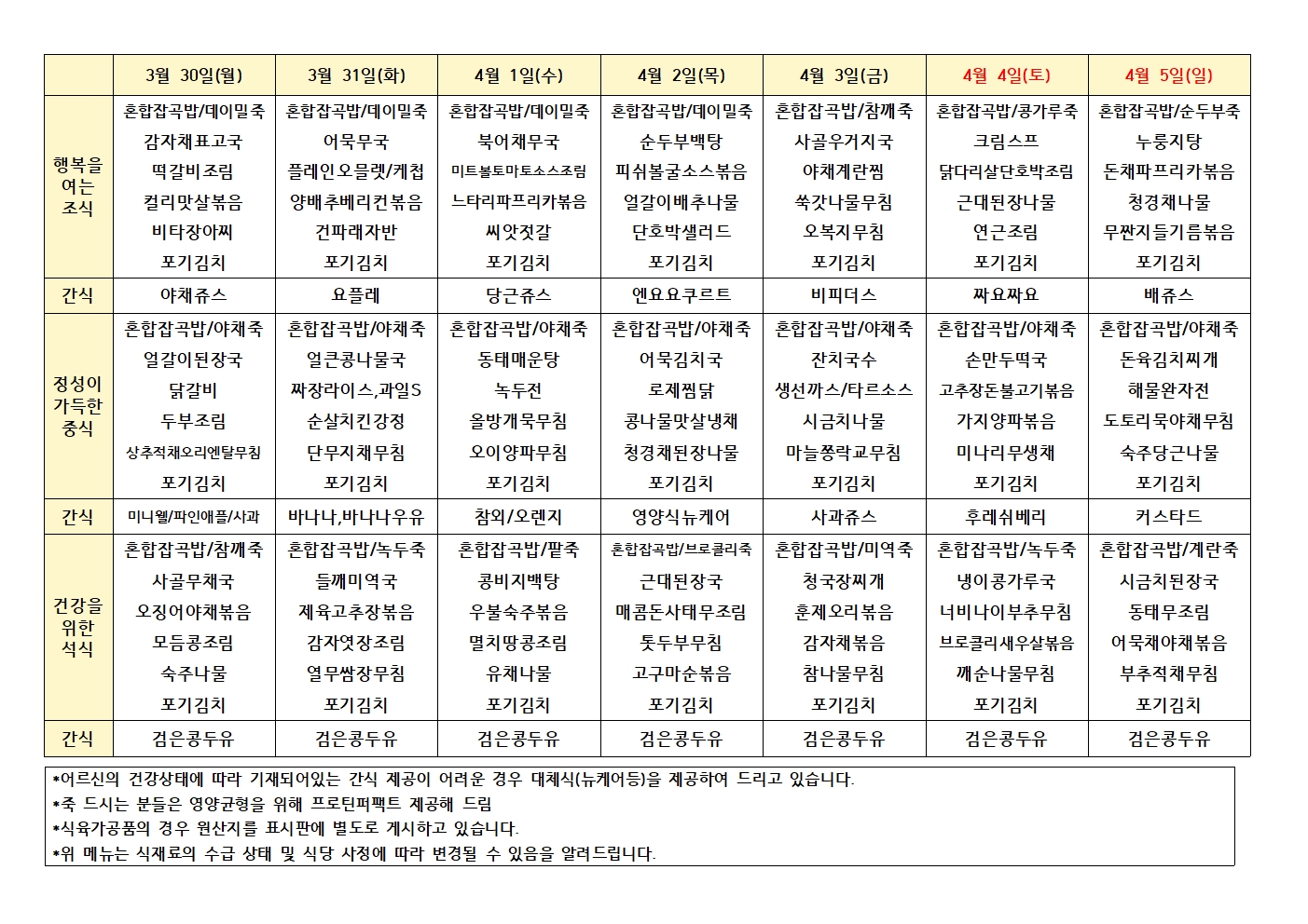3월30일~4월5일 주간식단